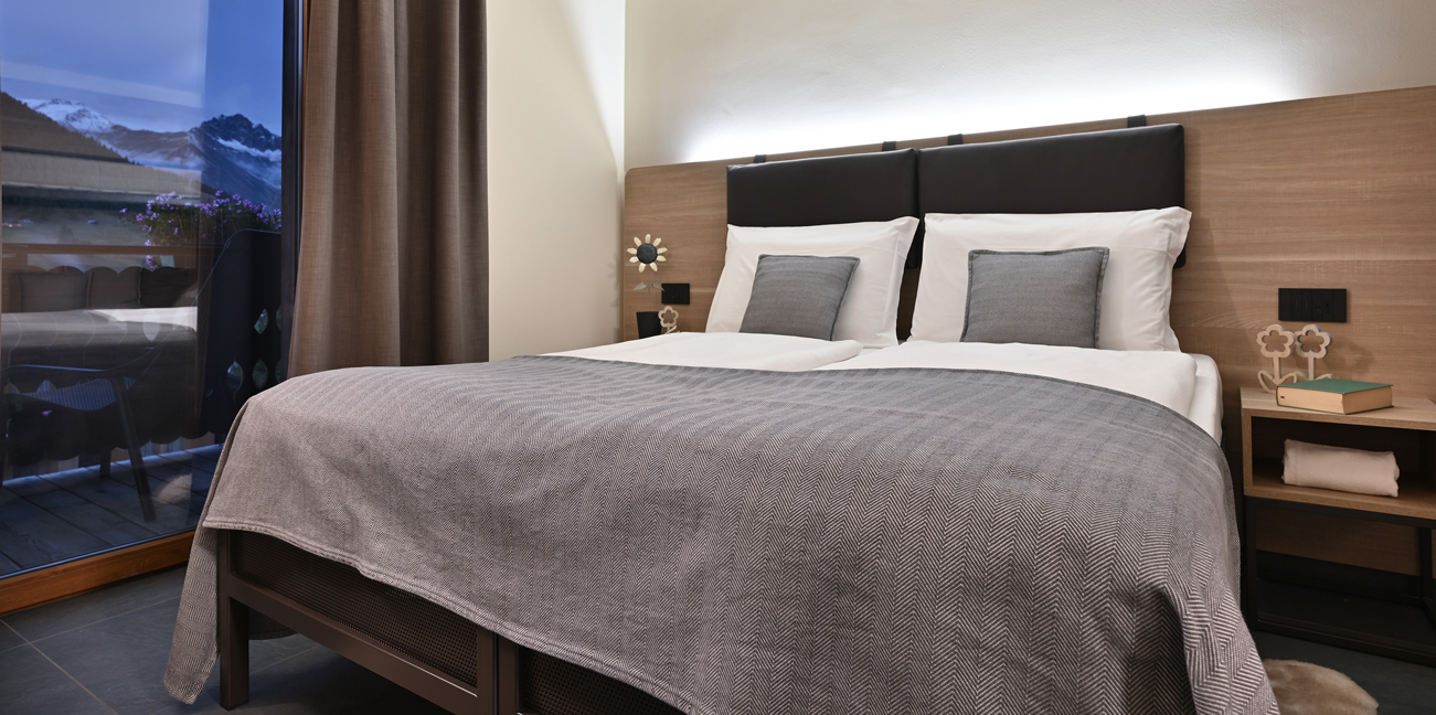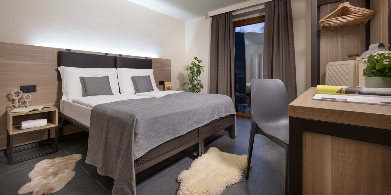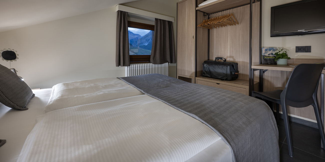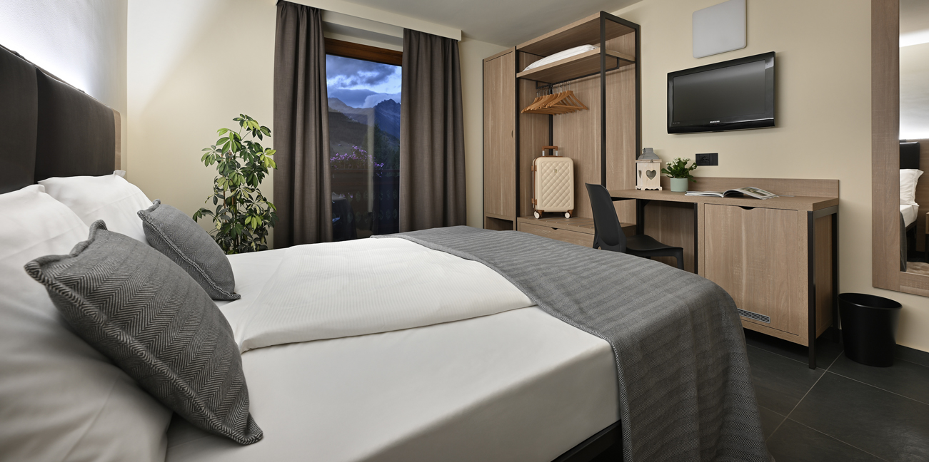 Die Zimmer vom Hotel Loredana di Livigno empfangen Sie mit der Wärme, die nur Holzräume vermitteln können, die typisch der Bergarchitektur sind.